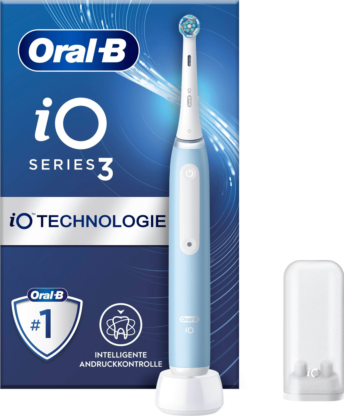 - 1× Oral-B iO Series 3 elektrische Zahnbürste (Farbe nach Wahl: Schwarz / Hellblau)